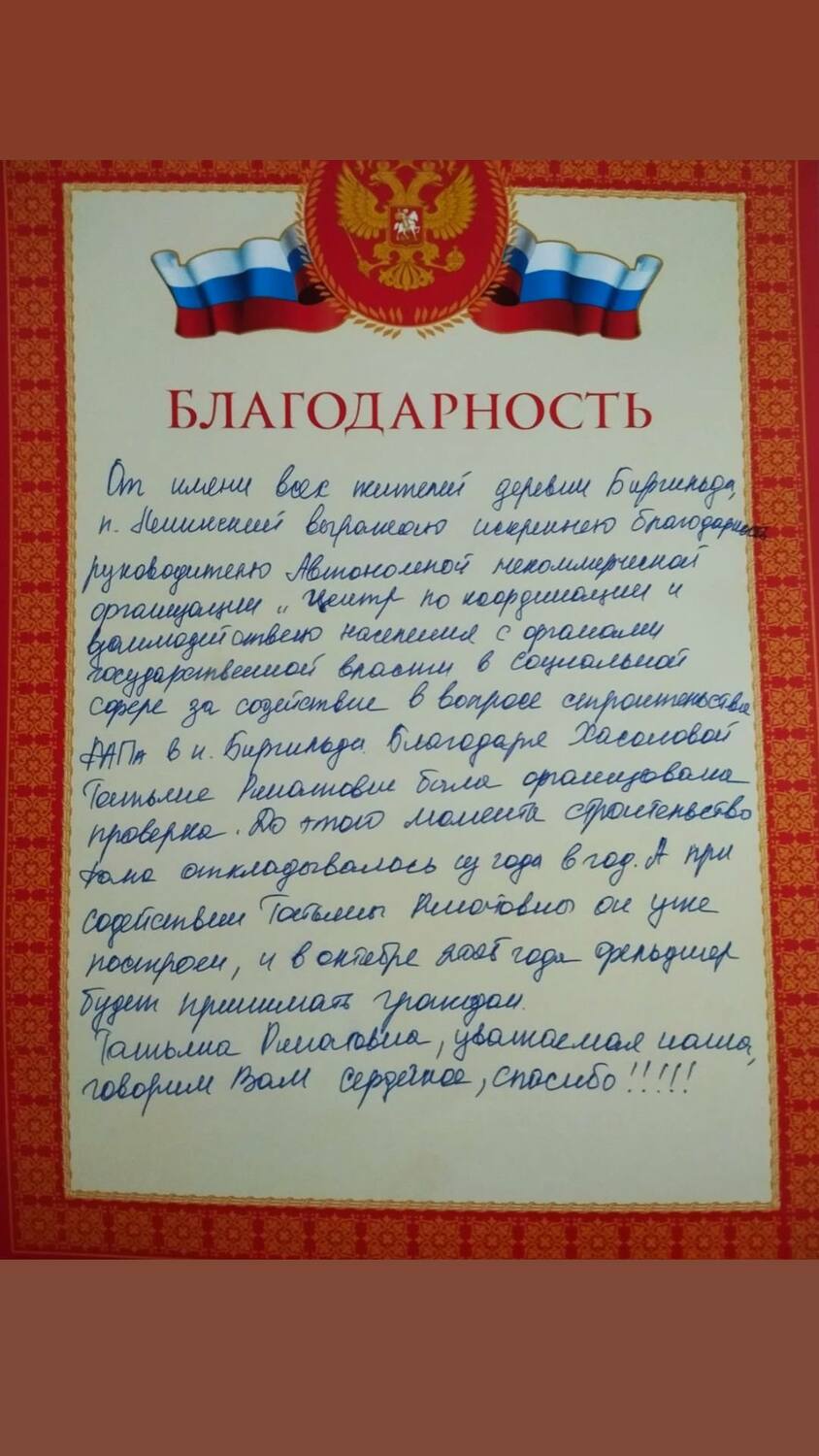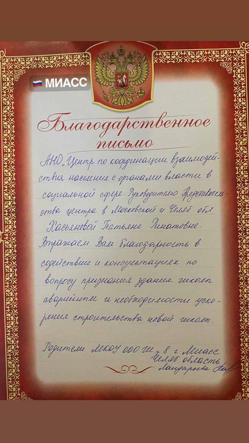 Хотим выразить свою искреннюю благодарность и признательность Хасьяновой Татьяне Ринатовне, за участие в расселении аварийного дома.Ваша работа, полная ответственности и профессионализма, помогла обеспечить безопасность и комфорт для всех жителей.Ваше неравнодушие и оперативность в решении всех возникающих вопросов заслуживают особого уважения. Благодаря вашим усилиям, процесс расселения прошёл организованно и с минимальными неудобствами для людей.Это был сложный проект, требующий точной координации и взаимопонимания между различными службами и организациями, и вы справились с этой задачей на высшем уровне.Спасибо за вашу преданность делу и за то, что вы делаете наш город лучше!